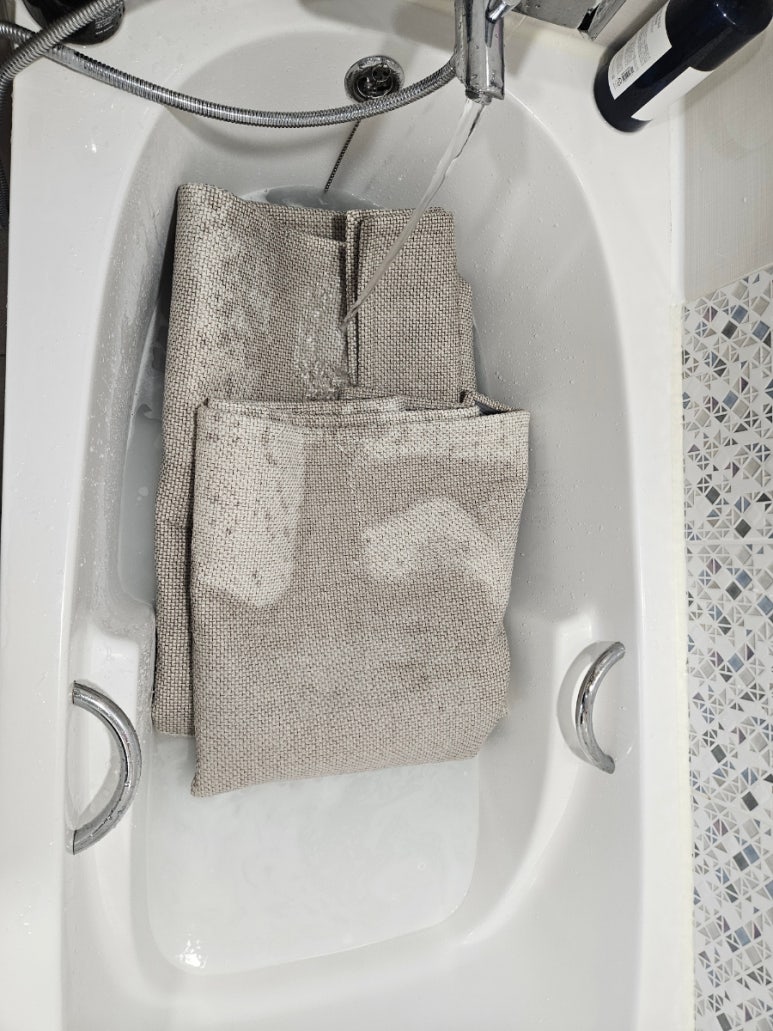 그런다음 욕조에 고이접어 높은 카페트를 넣고